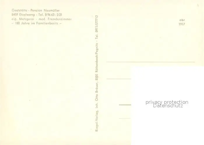 Etzelwang Gaststaette Pension Neumueller Gastraeume Zimmer Garten Klavierspieler Etzelwang postalisch nicht gelaufen 1921-1965 Erhaltung siehe scans [WerneD78] WernPID7