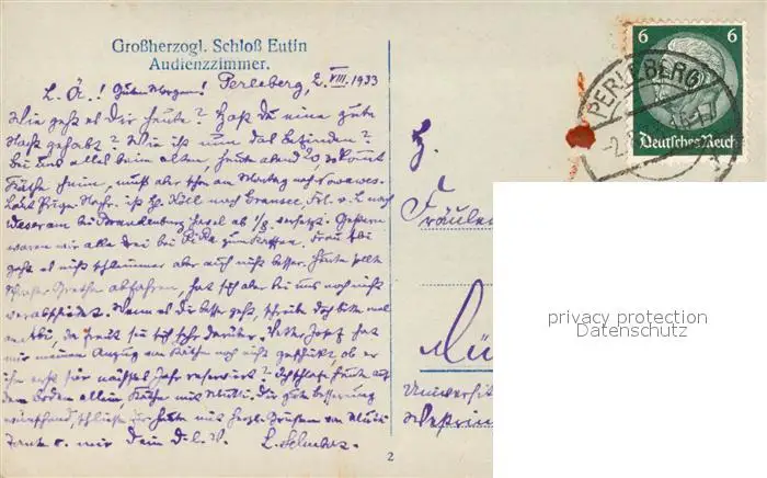 Eutin Grossherzogliches Schloss Audienzzimmer Eutin postalisch gelaufen 1933 Erhaltung siehe scans [KathaD81] Kathoren