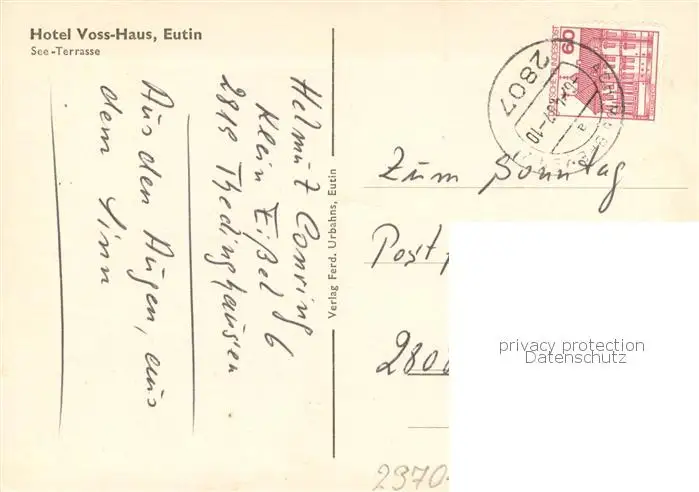 Eutin Hotel Voss Haus See-Terrasse Eutin postalisch gelaufen 1987 Erhaltung siehe scans [FriedD77] Frierer