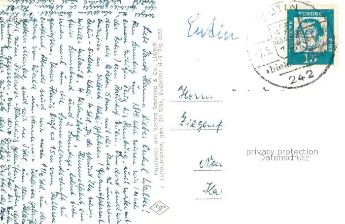 Eutin Naturpark Holsteinische Schweiz Fliegeraufnahme Eutin postalisch gelaufen 1964 Erhaltung siehe scans [FriedD77] Frierer