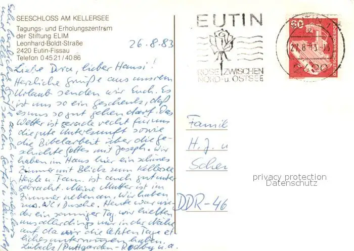 Eutin Seeschloss am Kellersee Eutin postalisch gelaufen 1983 Erhaltung siehe scans [LiesaD40] LiesID40