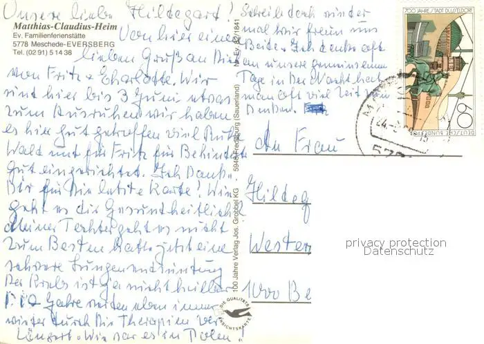 Eversberg Matthias Claudius Heim Eversberg postalisch gelaufen 1986 Erhaltung siehe scans [WerneD78] WernPID7