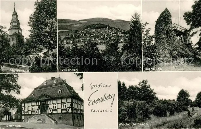 AK / Ansichtskarte Eversberg Pfarrkirche Panorama Burgruine Rathaus Wacholderheide Eversberg