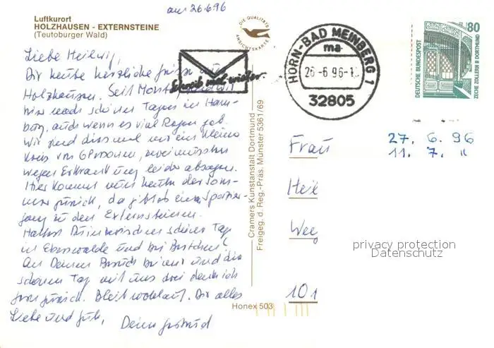 Externsteine Fliegeraufnahme Externsteine postalisch gelaufen 1996 Erhaltung siehe scans [PaolaD17] PaolPID1