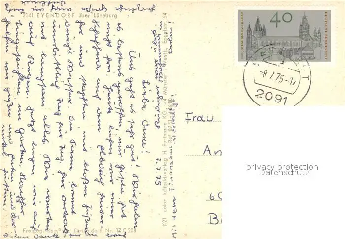Eyendorf_Lueneburger_Heide Kategorie Alte Ansichtskarten Postkarten bx54122 Eyendorf_Lueneburger_Heide Fliegeraufnahme Eyendorf_Lueneburger_Heide postalisch gelaufen 1975 Erhaltung siehe scans [NatalD47]