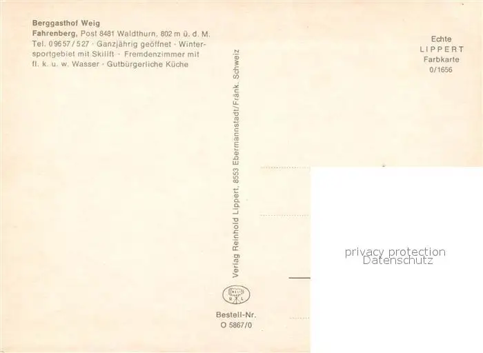 Fahrenberg Oberpfalz Kategorie Alte Ansichtskarten Postkarten bx53522 Fahrenberg_Oberpfalz Berggasthof Weig Kirche Gastraeume Fahrenberg Oberpfalz postalisch nicht gelaufen nach 1965 Erhaltung siehe scans [WerneD78]