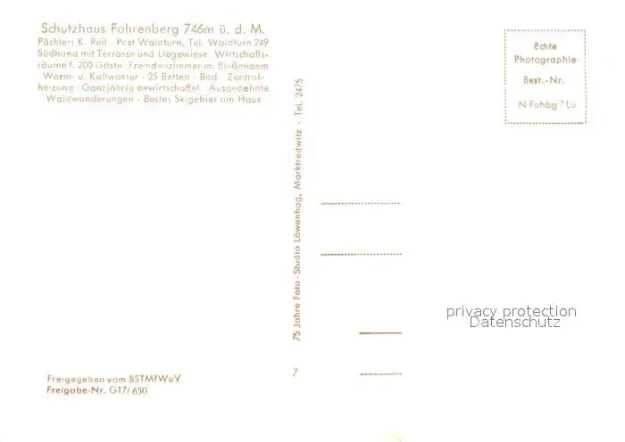 Fahrenberg Oberpfalz Kategorie Alte Ansichtskarten Postkarten bx73881 Fahrenberg_Oberpfalz Schutzhaus Fliegeraufnahme Fahrenberg Oberpfalz postalisch nicht gelaufen Erhaltung siehe scans [PaolaD17]