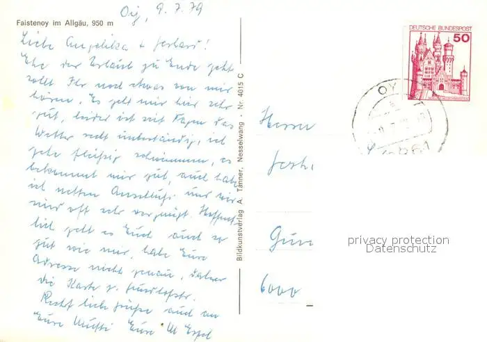 Faistenoy Ortsansicht mit Kirche Alpenpanorama Faistenoy postalisch gelaufen 1979 Erhaltung siehe scans [FriedD77] Frierer