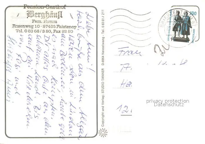Faistenoy Pension Restaurant Cafe Berghaeusl Faistenoy postalisch gelaufen nach 1965 Erhaltung siehe scans [WerneD78] WernPID7