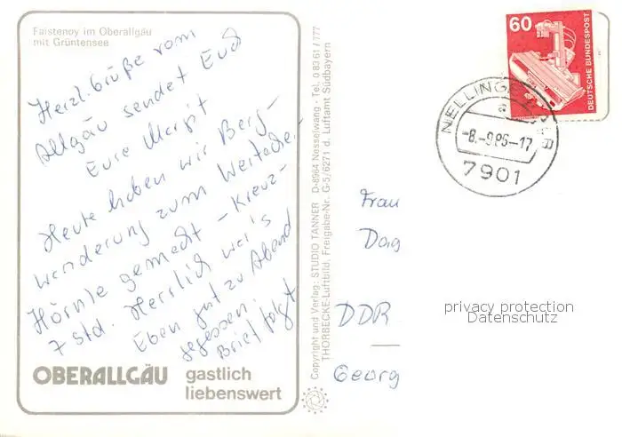 Faistenoy mit Gruentensee Alpenpanorama Faistenoy postalisch gelaufen 1986 Fliegeraufnahme Erhaltung siehe scans [FriedD77] Fliegeraufnahme Frierer