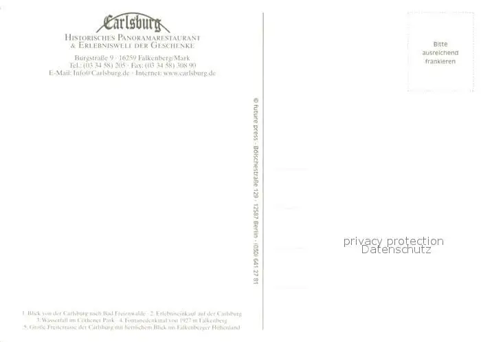 Falkenberg_Mark Carlsburg Historisches Panoramarestaurant Erlebniswelt der Geschenke Denkmal Falkenberg Mark postalisch nicht gelaufen nach 1965 Erhaltung siehe scans [FriedD77] Frierer