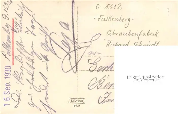 Falkenberg Mark Kategorie Alte Ansichtskarten Postkarten bx76347 Falkenberg_Mark Schraubenfabrik Richard Schmidt Falkenberg Mark postalisch gelaufen 1930 Erhaltung siehe scans [KathaD81]