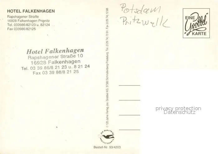 Falkenhagen_Pritzwalk Hotel Falkenhagen Fremdenzimmer Tagungsraum Rezeption Falkenhagen Pritzwalk postalisch nicht gelaufen nach 1965 Erhaltung siehe scans [FriedD77] Frierer