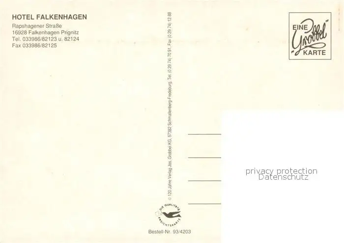 Falkenhagen_Pritzwalk Hotel Falkenhagen Rezeption Fremdenzimmer Seminarraum Falkenhagen Pritzwalk postalisch nicht gelaufen nach 1965 Erhaltung siehe scans [FriedD77] Frierer