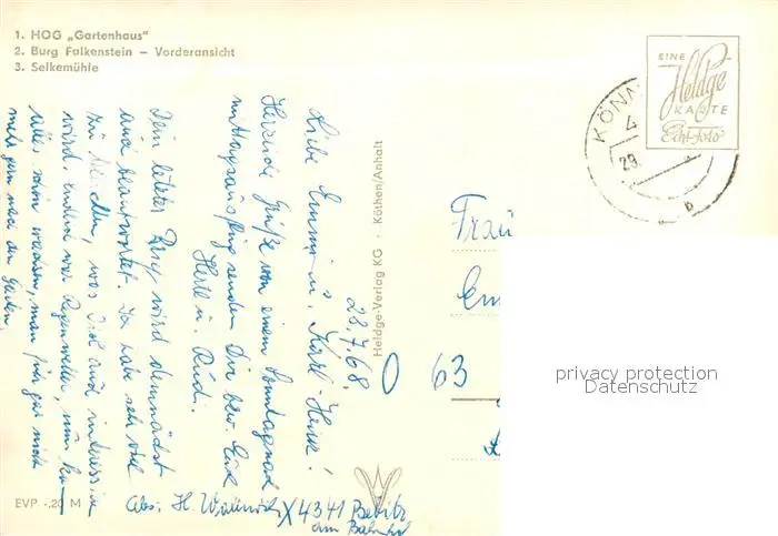 Falkenstein_Harz HOG Gartenhaus Burg Falkenstein Selkemuehle Falkenstein_Harz postalisch gelaufen 1968 Erhaltung siehe scans [FriedD77] Frierer