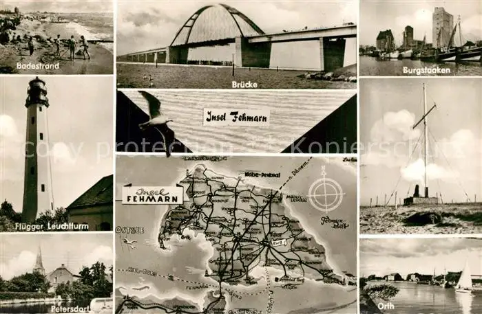AK / Ansichtskarte Fehmarn Badestrand Bruecke Burgstaaken Fluegger Leuchtturm Petersdorf Inselkarte Orth Fehmarn