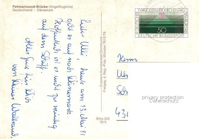 Fehmarnsundbruecke Fliegeraufnahme postalisch gelaufen 1981 Erhaltung siehe scans [WerneD78] WernPID7