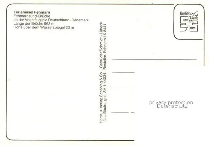 Fehmarnsundbruecke Fliegeraufnahme postalisch nicht gelaufen nach 1965 Erhaltung siehe scans [WerneD78] WernPID7