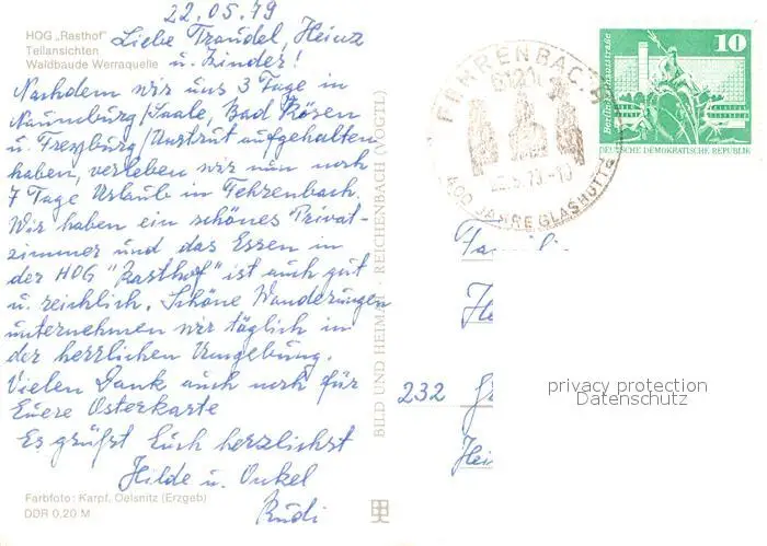 Fehrenbach_Thueringer_Wald HOG Rasthof Teilansichten Waldbaude Werraquelle Fehrenbach_Thueringer_Wald postalisch gelaufen 1979 Erhaltung siehe scans [WerneD78] WernPID7