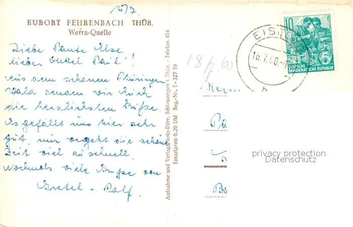 Fehrenbach_Thueringer_Wald Werra Quelle Fehrenbach_Thueringer_Wald postalisch gelaufen 1960 Erhaltung siehe scans [WerneD78] WernPID7