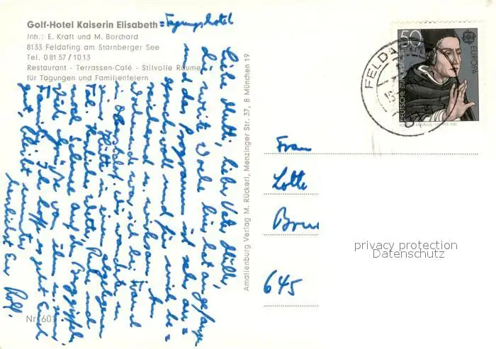 Feldafing_Starnbergersee Golf Hotel Kaiserin Elisabeth Feldafing_Starnbergersee postalisch gelaufen 1980 Erhaltung siehe scans [WerneD78] WernPID7