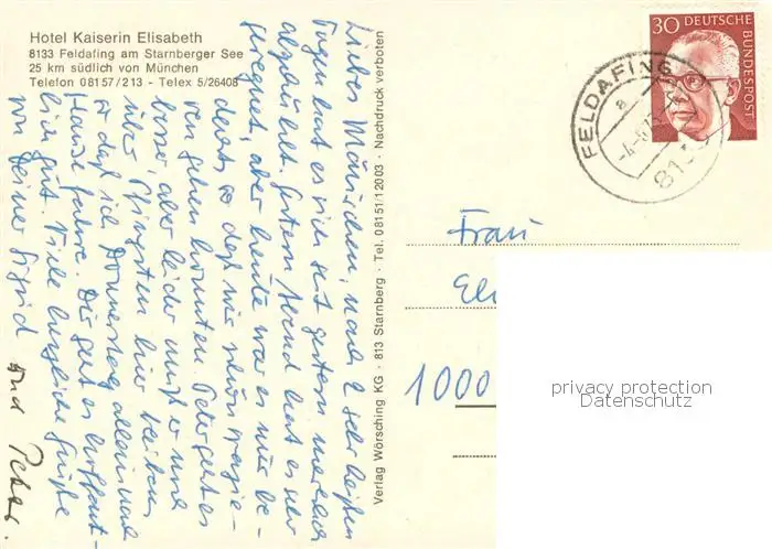 Feldafing_Starnbergersee Hotel Kaiserin Elisabeth Terrasse Bootsanleger Panorama Feldafing_Starnbergersee postalisch gelaufen 1973 Erhaltung siehe scans [FriedD77] Frierer