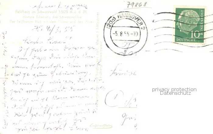 Feldberg_1450m_Schwarzwald Fliegeraufnahme mit Feldberger Hof und Titisee postalisch gelaufen 1955 Erhaltung siehe scans [WerneD78] WernPID7