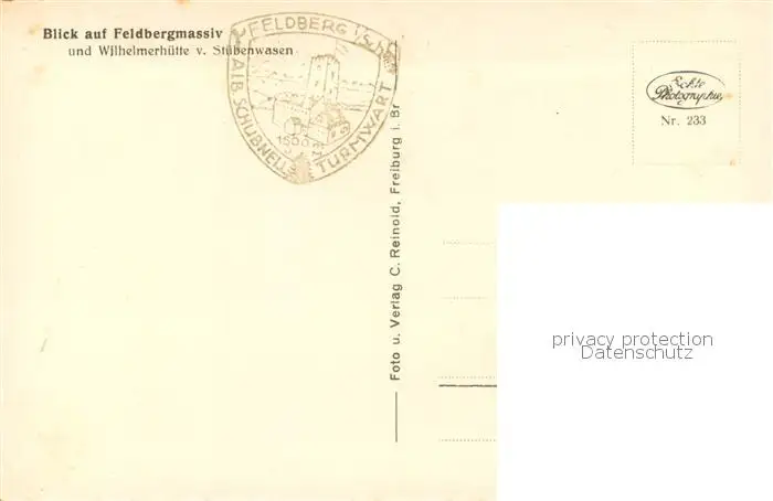 Feldberg_1450m_Schwarzwald mit Wilhelmerhuette und Stuebenwasen postalisch nicht gelaufen 1921-1965 Erhaltung siehe scans [WerneD78] WernPID7