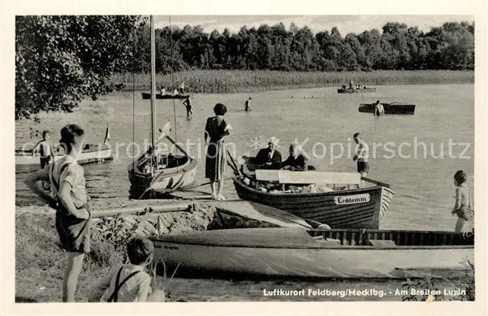 AK / Ansichtskarte Feldberg_Mecklenburg Badestrand am BreitenLuzin Bootfahren Feldberg_Mecklenburg