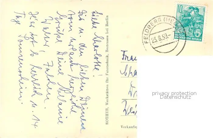 Feldberg_Mecklenburg Seerosen-Kanal Feldberg_Mecklenburg postalisch gelaufen 1959 Erhaltung siehe scans [FriedD77] Frierer