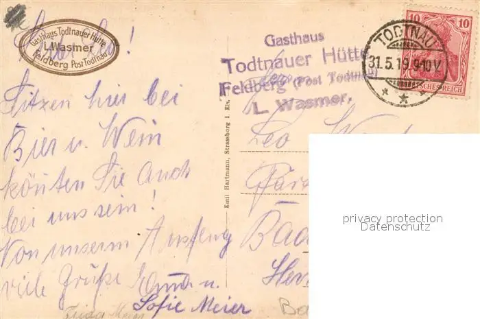 Feldberg_Schwarzwald Feldbergturm Alpenkette Feldberg Schwarzwald postalisch gelaufen 1919 Erhaltung siehe scans [LiesaD40] LiesID40
