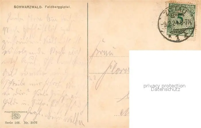 Feldberg_Schwarzwald Gipfelpanorama Feldberg Schwarzwald postalisch gelaufen 1924 Erhaltung siehe scans [WerneD78] WernPID7