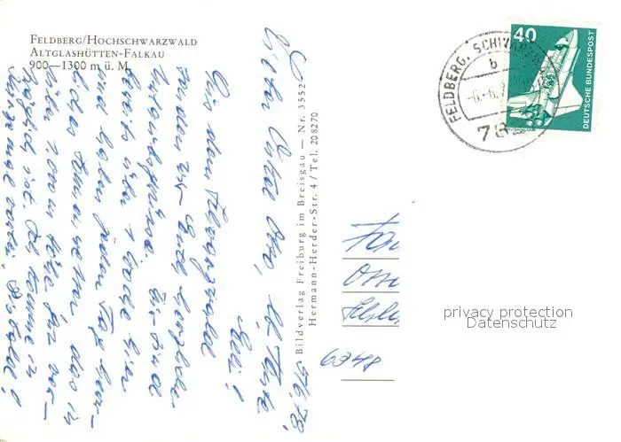 Feldberg_Schwarzwald Panorama Blick auf Altglashuetten Falkau Feldberg Schwarzwald postalisch gelaufen 1978 Erhaltung siehe scans [FriedD77] Frierer