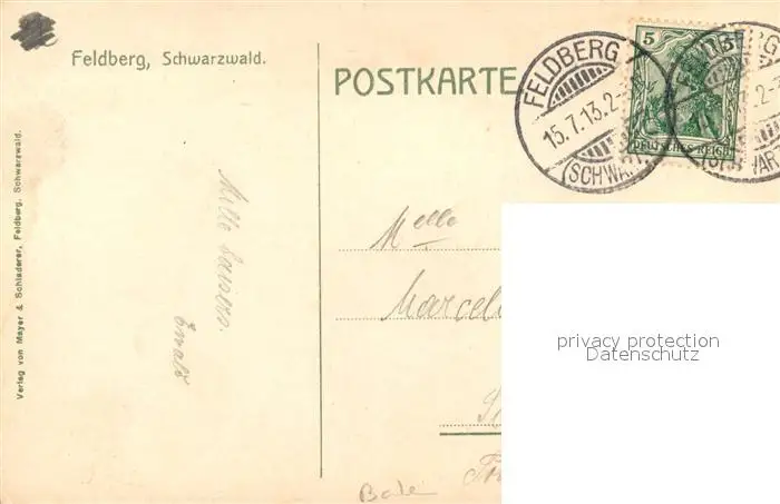 Feldberg_Schwarzwald St. Wilhelmertal Feldberg Schwarzwald postalisch gelaufen 1913 Erhaltung siehe scans [LiesaD40] LiesID40