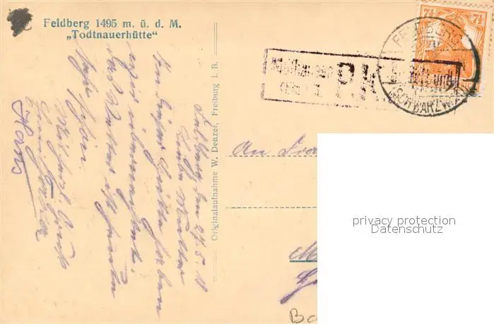 Feldberg_Schwarzwald Todtnauerh?tte Feldberg Schwarzwald postalisch gelaufen 1918 Erhaltung siehe scans [LiesaD40] LiesID40