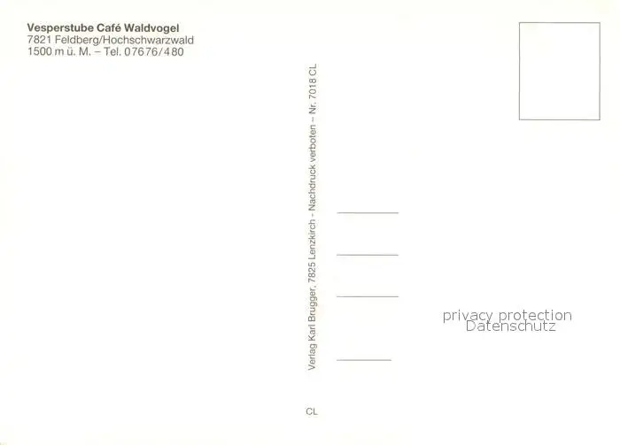 Feldberg_Schwarzwald Vesperstube Café Waldvogel Feldberg Schwarzwald postalisch nicht gelaufen nach 1965 Erhaltung siehe scans [LiesaD40] LiesID40
