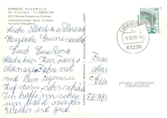 Feldwies Kurhotel Buchwald Feldwies postalisch gelaufen 1993 Erhaltung siehe scans [FriedD77] Frierer