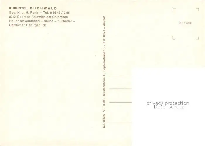 Feldwies Kurhotel Buchwald Gaestehaus Rank Feldwies postalisch nicht gelaufen 1921-1965 Erhaltung siehe scans [WerneD78] WernPID7