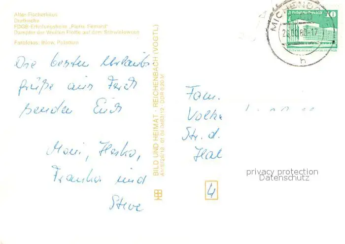 Ferch Altes Fischerhaus Dorfkirche FDGB Erholungsheim Dampfer Weisse Flotte Schwielowsee Ferch postalisch gelaufen 1988 Erhaltung siehe scans [FriedD77] Frierer