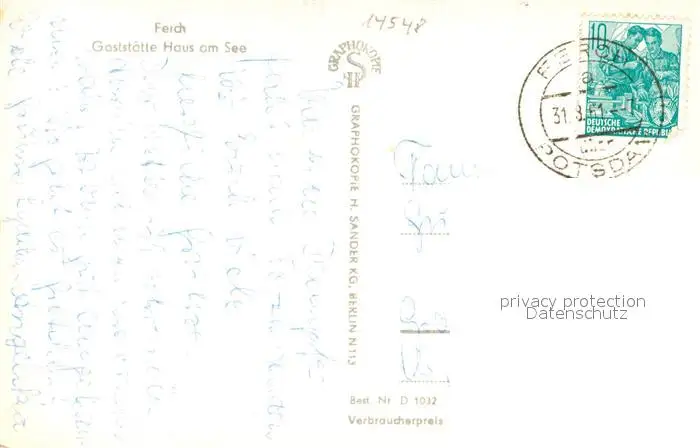 Ferch Gaststaette Haus am See Ferch postalisch gelaufen 1961 Erhaltung siehe scans [LiesaD40] LiesID40