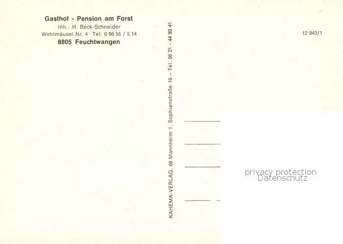 Feuchtwangen Gasthof Pension am Forst Gaststube Feuchtwangen postalisch nicht gelaufen nach 1965 Erhaltung siehe scans [WerneD78] WernPID7