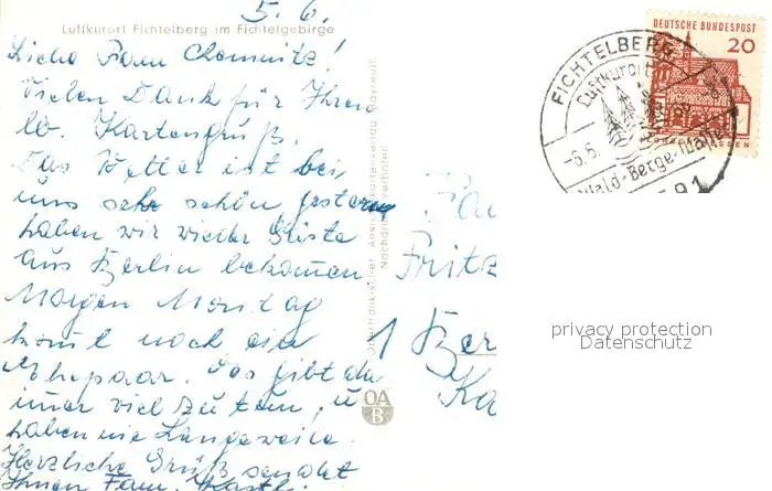 Fichtelberg_Bayreuth Ortspartie mit Kirche Fichtelberg Bayreuth postalisch gelaufen nach 1965 Erhaltung siehe scans [WerneD78] WernPID7