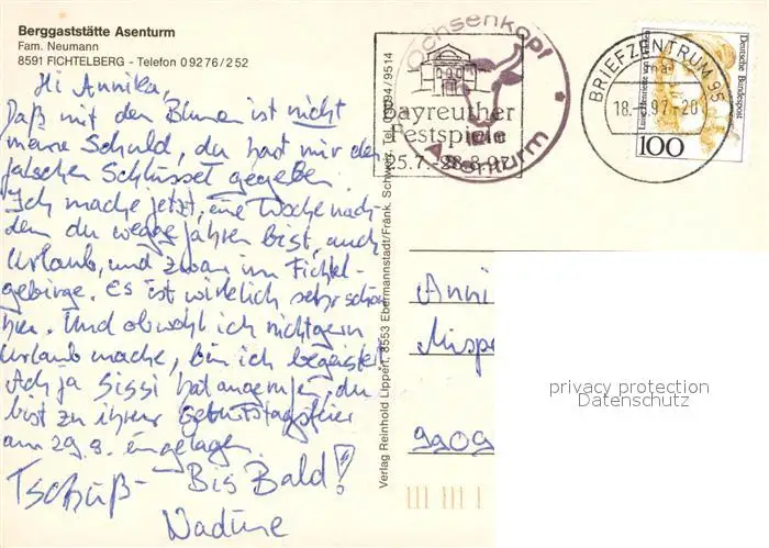Fichtelberg_Oberwiesenthal Berggaststaette Asenturm Restaurant Fichtelberg postalisch gelaufen 1997 Erhaltung siehe scans [WerneD78] WernPID7