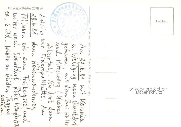 Fiderepasshuette Motiv Fiderepasshuette postalisch gelaufen 1981 Erhaltung siehe scans [WerneD78] WernPID7
