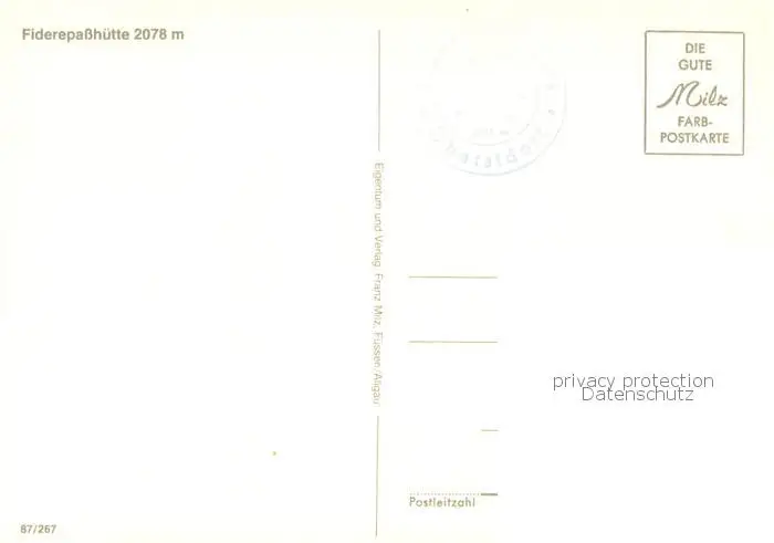 Fiderepasshuette_2078m_Oberstdorf Ansicht postalisch nicht gelaufen nach 1965 Erhaltung siehe scans [FriedD77] Frierer