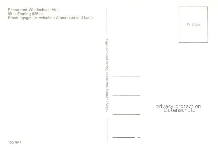 Finning Restaurant Windachsee Alm Badestrand Finning postalisch nicht gelaufen nach 1965 Erhaltung siehe scans [FriedD77] Frierer