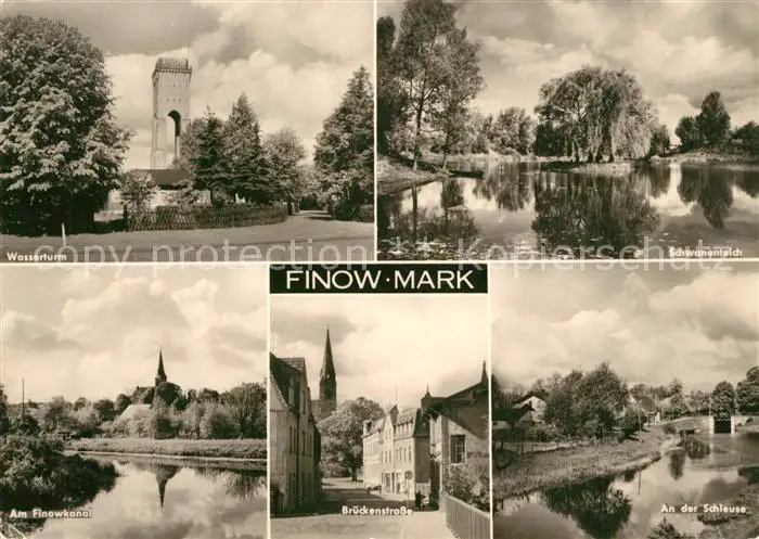 AK / Ansichtskarte Finow_Eberswalde Wasserturm Schwanenteich Finowkanal Brueckenstrasse An der Schleuse Finow Eberswalde