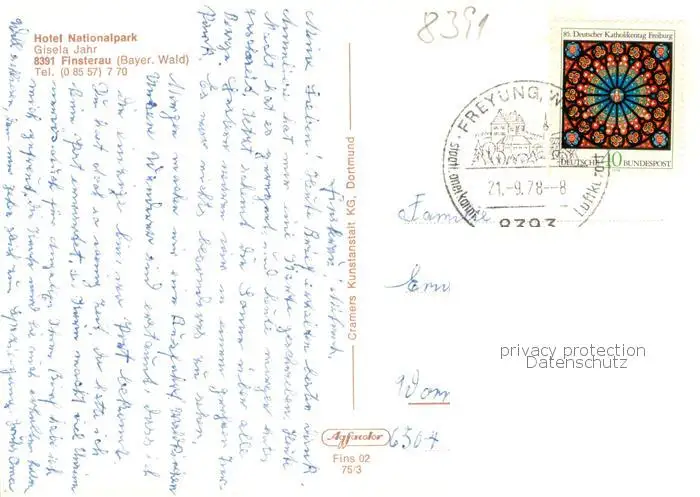 Finsterau_Bayerischer_Wald Hotel Nationalpark Gaststube Finsterau_Bayerischer postalisch gelaufen 1978 Erhaltung siehe scans [FriedD77] Frierer