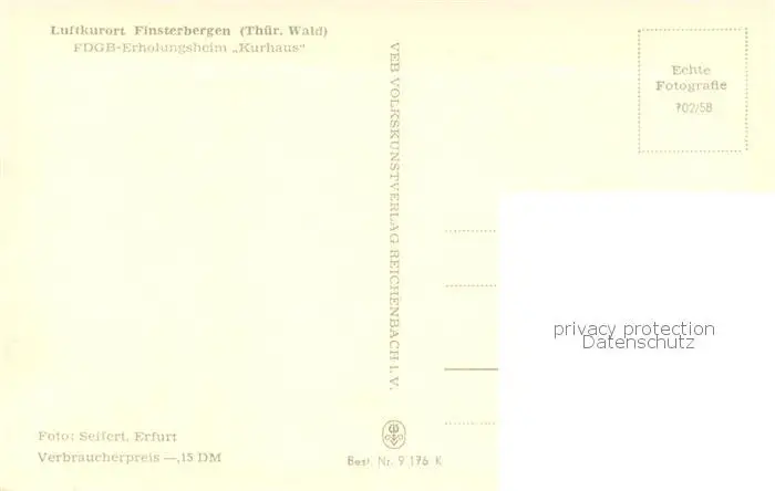 Finsterbergen FDGB Erholungsheim Kurhaus Finsterbergen postalisch nicht gelaufen 1958 Erhaltung siehe scans [FriedD77] Frierer