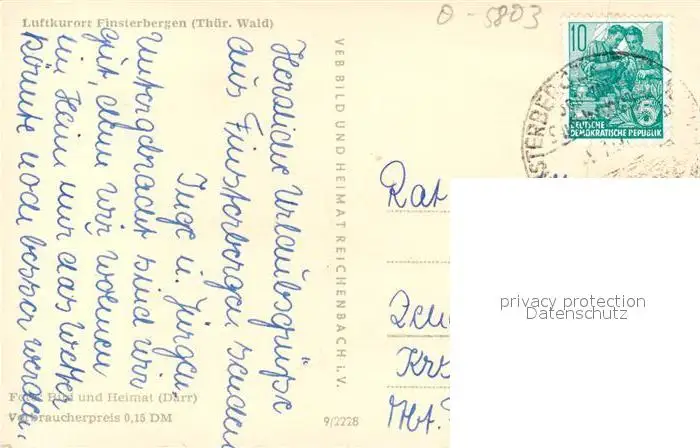 Finsterbergen Ortsansicht Finsterbergen postalisch gelaufen 1921-1965 Erhaltung siehe scans [WerneD78] WernPID7